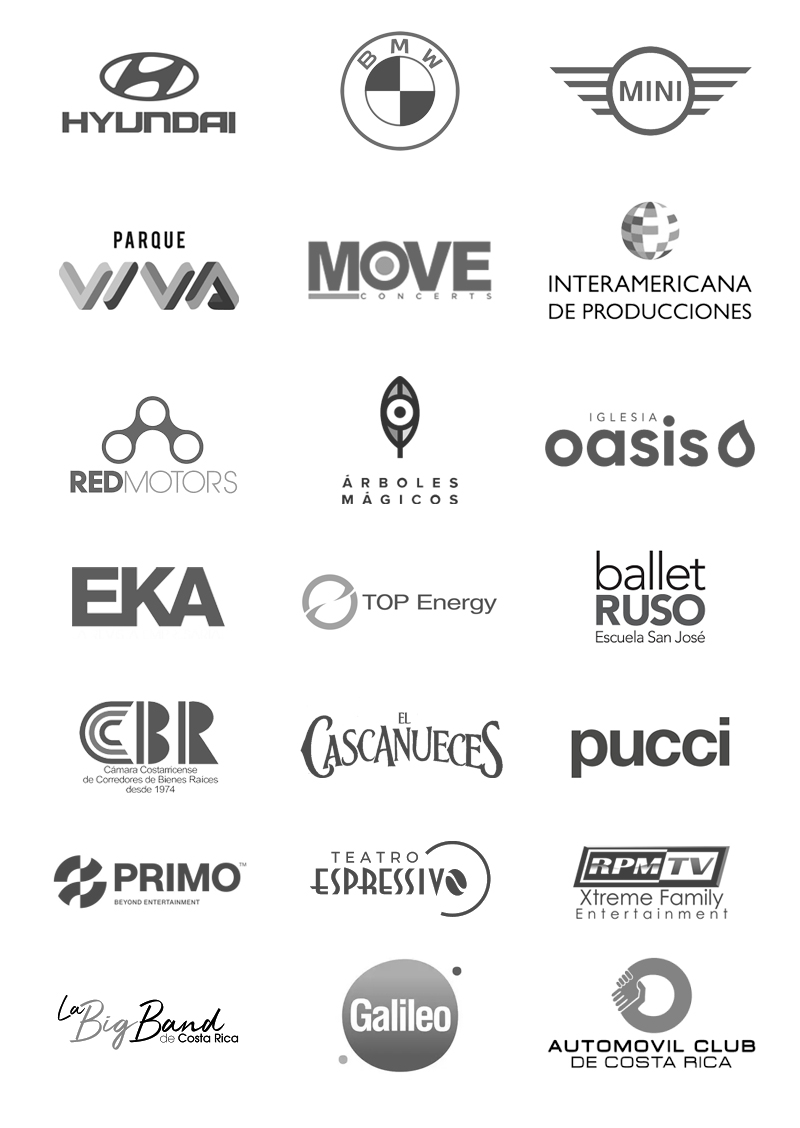 Hemos tenido el privilegio de colaborar con marcas de renombre en Costa Rica, como Hyundai, BMW, MINI, Parque Viva, MOVE Concerts, Interamericana de Producciones, EKA, Pucci, entre otras, y estamos comprometidos a seguir ofreciendo resultados excepcionales y superando las expectativas de nuestros clientes en cada proyecto.